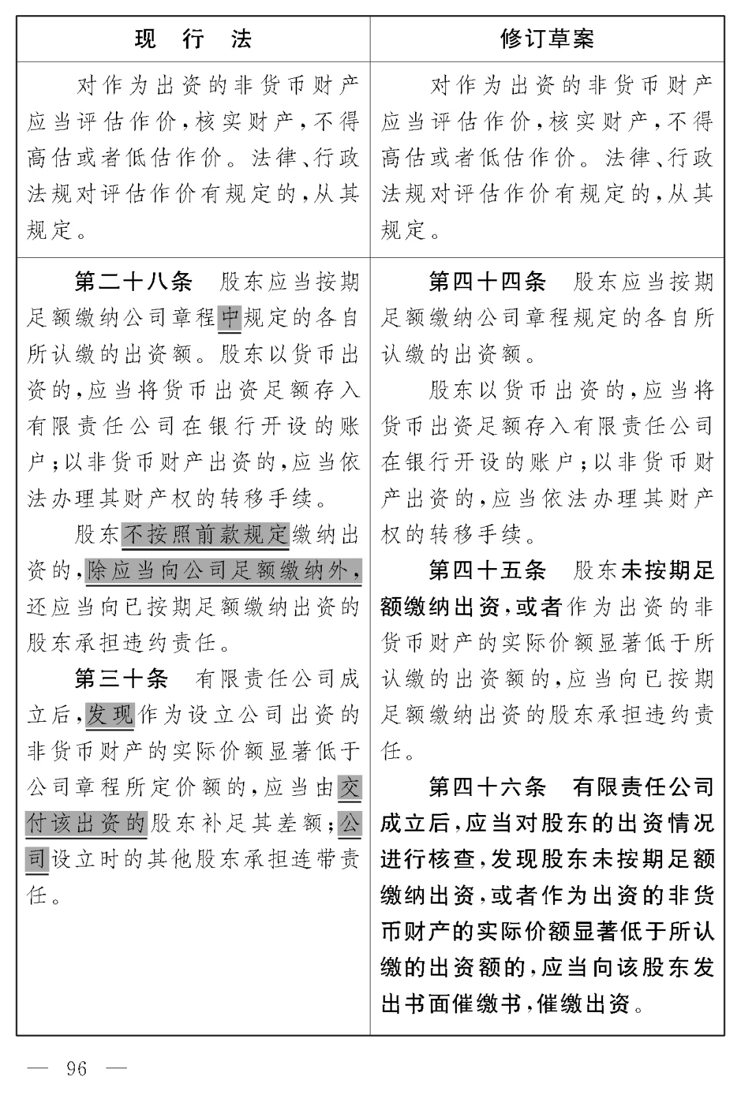 同時(shí),加強對股東出資和股權交易行為的規范,維護交易安全。一是,增加股東欠繳出資的失權制度,規定:股東未按期足額繳納出資,經(jīng)公司催繳后在規定期限內仍未繳納出資的,該股東喪失其未繳納出資的股權(修訂草案第四十六條、第一百零九條)。二是,增加有限責任公司股東認繳出資的加速到期制度,規定:公司不能清償到期債務(wù),且明顯缺乏清償能力的,公司或者債權人有權要求已認繳出資但未屆繳資期限的股東提前繳納出資(修訂草案第四十八條)。三是,明確瑕疵股權轉讓時(shí)轉讓方、受讓方的出資責任(修訂草案第八十九條)。