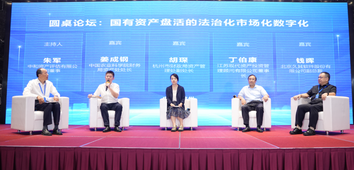 中和資產(chǎn)評估有限公司董事朱軍和浙江省財政廳資產(chǎn)管理處副處長(cháng)潘朝暉分別主持了“國有資產(chǎn)盤(pán)活的法治化市場(chǎng)化數字化”和“國有資產(chǎn)數字化交易實(shí)踐”兩個(gè)圓桌論壇。中國農業(yè)科學(xué)研究院財務(wù)局資產(chǎn)處處長(cháng)姜成鋼、浙江省杭州市財政局資產(chǎn)管理處副處長(cháng)胡琛、浙江省杭州市余杭區財政局局長(cháng)姜根軍、浙江省杭州市富陽(yáng)區財政局副局長(cháng)王崢嶸、江蘇現代資產(chǎn)投資管理顧問(wèn)有限公司董事長(cháng)丁伯康以及來(lái)自專(zhuān)業(yè)化數字服務(wù)機構的代表錢(qián)暉副總裁、陳春副總經(jīng)理等參與圓桌討論,分享實(shí)踐做法,交流思路經(jīng)驗,凝聚廣泛共識。